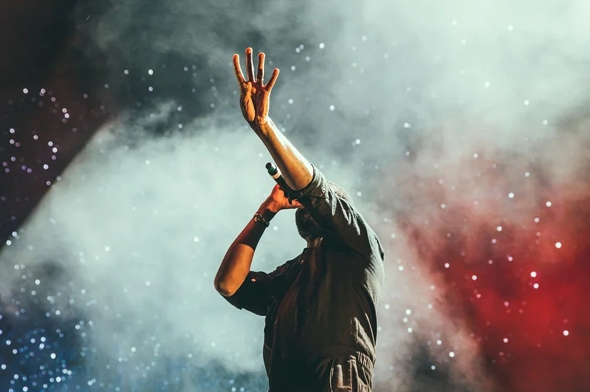 매번 공연에서 한 팔을 들면 자신이 작곡 또는 작사를 한곡을 가창 하는것이며