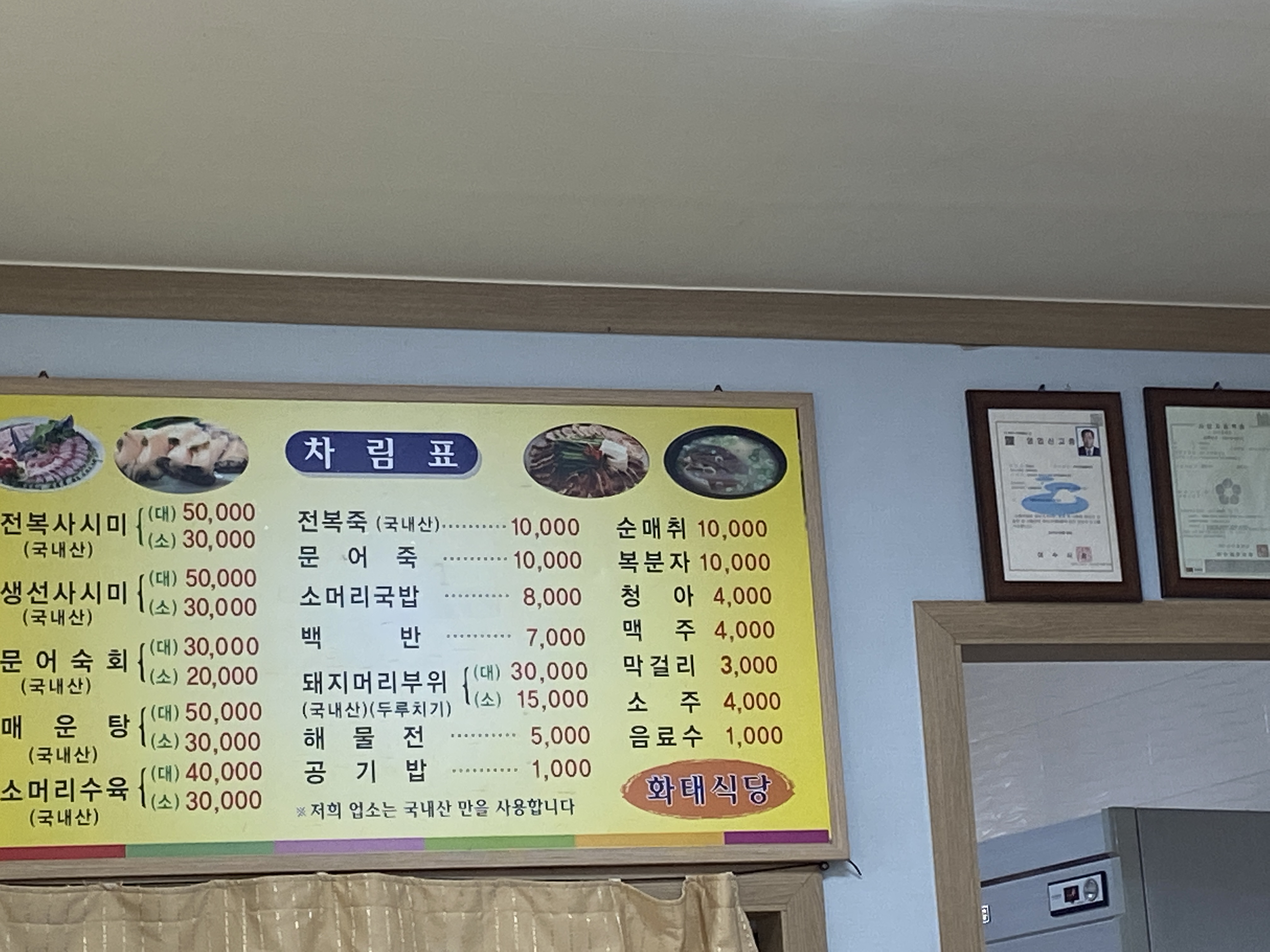 바로보이는 화태식당 입니다.